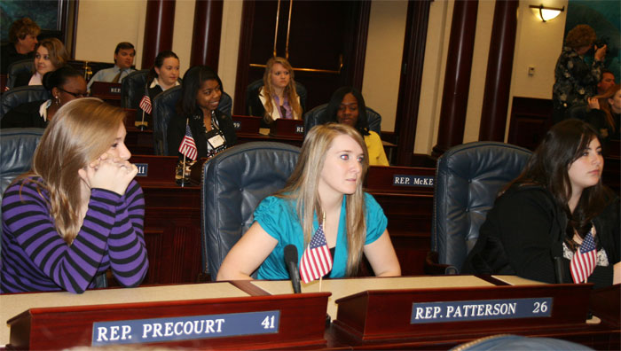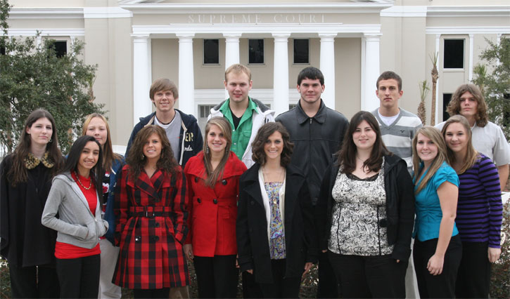 While in Tallahassee, the students toured the governor’s mansion and observed court in session in the Florida Supreme Court. The students participated in a mock session in the house chambers where various members of the House of Representatives addressed the group. In addition, the students enjoyed visiting the Challenger Museum and viewing the IMAX movie, Forces of Nature.