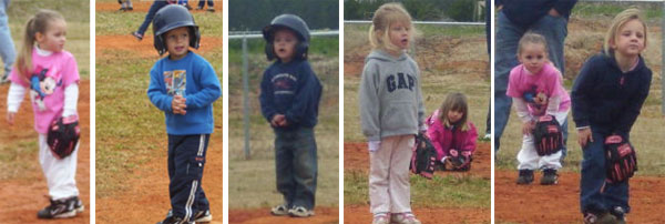 Pictured above: Scenes from the first NWE Wee Ball practice game of the year between Drew’s Dream Team and the Corn Huskers. Submitted photos by Blair Scott for NorthEscambia.com, click to enlarge.