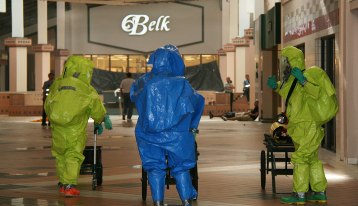 With an active shooter inside the mall, a hostage situation, a hazardous materials incident and explosives, the exercise allowed first responders to practice for a variety of scenarios.