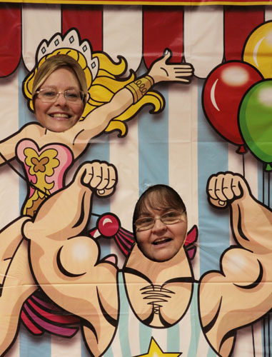Pictured: In one of the most unique of our weekend photos, Paula Jernigan (top) and Nadine McCaw pose at the Century Relay for Life. NorthEscambia.com photo, click to enlarge.