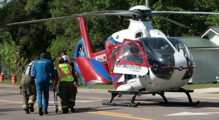 The accident completely blocked Highway 29 for about 30 minutes due to the helicopter landing.