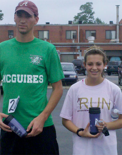 Pictured top and bottom: About 40 runners took part in the second annual Atmore Community Hospital Relay for Life 5K Run/Walk Saturday morning in Atmore. Pictured left: Overall winners Keith Bell of Atmore and Georgia Geotter of Bratt. Submitted photos for NorthEscambia.com, click to enlarge.
