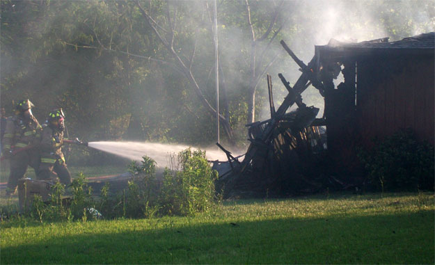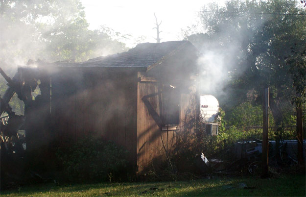 A fire just after sunrise Thursday morning destroyed a shed on Graham Road near Cantonment. There were no injuries reported. NorthEscambia.com photo by Kristi Smith, click to enlarge.
