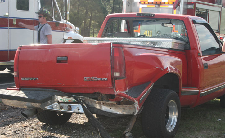 The accident happened near the paper mill at about 3:15 p.m. when car apparently collided with the rear of a pickup truck. The driver of a 1997 GMC Sierra, Zhivara Kiktavi-Dye, 30, of Cantonment, was transported to West Florida Hospital with minor injuries.