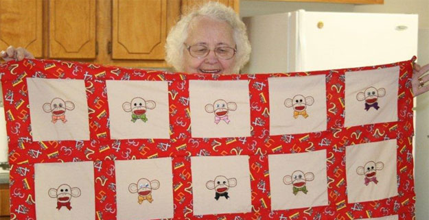 Nancy Holland showed a Monkey quilt she had been working on and plans to have it completed soon.