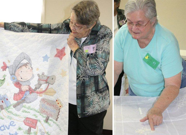 Several members bring items they have been working on throughout the month and share during show and tell. Becky Dortch showed a beautiful throw she had been working on. The stitching was done by machine. She hopes to have it finished in the near future.