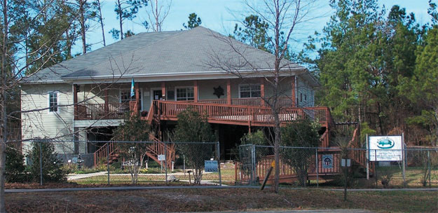 Flomaton’s Hurricane Park is an easy walk around a playground on a paved track. The walk passes the Turtle Point Environmental Science Center (pictured), a hands-on experience located on twenty acres of wetlands on Big Escambia Creek. The center features an interpretive wildlife center; wetland trail and boardwalk; gardens; butterfly and honeybee exhibits; and touch tank; live reptile, fish, and amphibian exhibits and a gift shop. The park is located on Highway 31 across from Flomaton High School.
