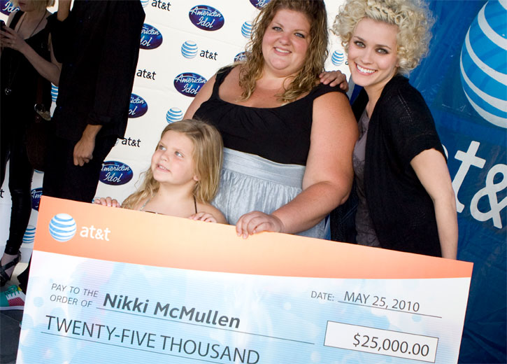 Nikki McMullen of Atmore won $25,000 in the AT&T American Idol Sweepstakes Tuesday night in Los Angeles.