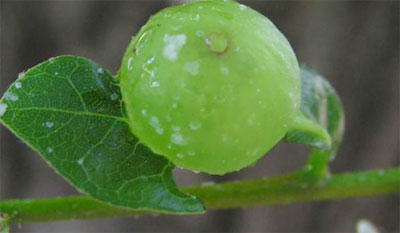The tiny gall wasp begins the gall making process in early spring by piercing a selected tree part with its egg laying device and depositing an egg inside the plant tissue. Fluids deposited with the egg cause the plant cell multiplication process to begin. The larva that hatches from the egg produces additional substances that maintain and control cell division. The larva develops within a cavity inside the gall, feeding on material produced in the cavity lining. At maturity, the larva transforms into a pupa, and later becomes an adult that chews its way out of the gall. By causing the tree to form a gall, the gall wasp has provided food and shelter for its offspring.