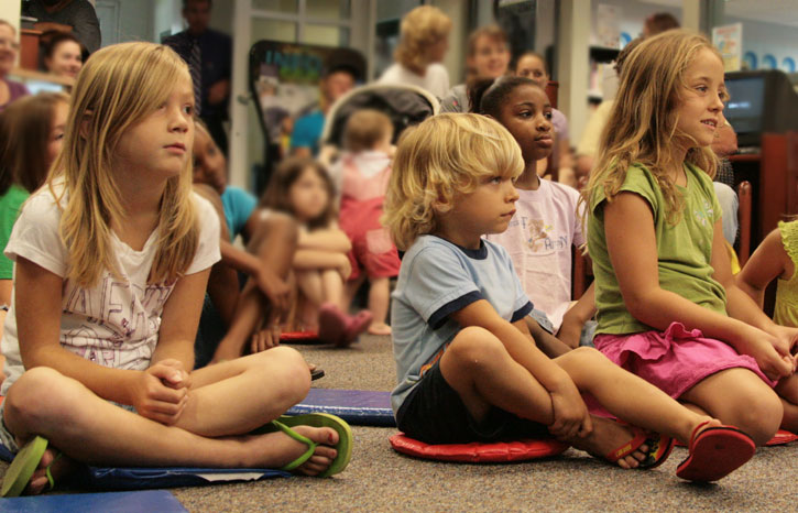 Kids of all ages enjoyed the acrobat Liang, a Chinese Olympian, spinning plates, balancing cups of water on her chin and even spinning knives Tuesday at Century Branch Library.