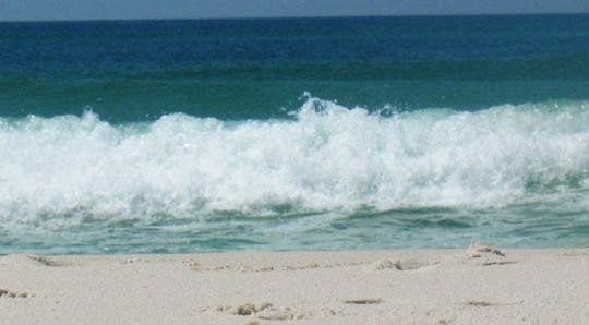 Pictured top: Gov. Charlie Crist prepares to take an aerial tour of the Gulf Sunday from Pensacola Beach. Pictured inset: Crist in the Florida Division of Emergency Management mobile command center. Courtesy photos for NorthEscambia.com Pictured below: Waves roll into Pensacola Beach Saturday. Submitted photo by Tanya Poston for NorthEscambia.com, click to enlarge.
