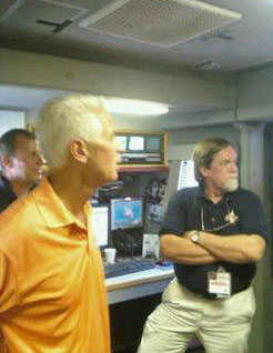 DEM Director David Halstead and Florida Department of Environmental Protection Secretary Mike Sole briefed the Governor on oil cleanup, and Governor Crist and Secretary Sole toured the Gulf on the skimmer Orion to observe firsthand the ship’s oil spill cleanup efforts.