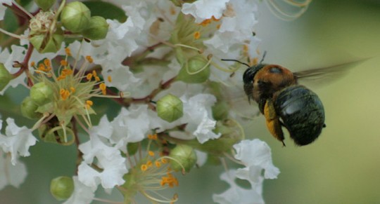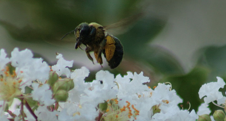 Pictured: Bees enjoying our NorthEscambia.com crepe myrtles. NorthEscambia.com photos, click to enlarge.