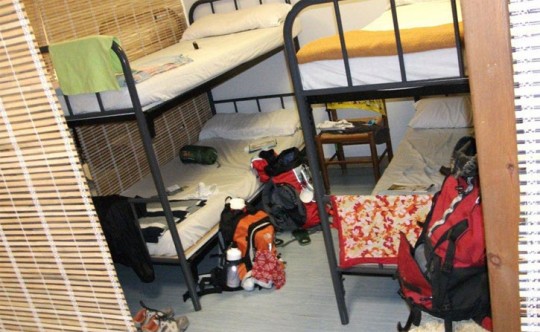 I changed into dry clothes and lay down to dry and get warm. I thought I would never get my core temperature up to normal. I kept reaching up and messing with the heater knobs to no avail. It took close to an hour before I felt warm again. This group is the quietest group of hikers I have ever been with. Within a couple hours this room was full also and I am glad we got here when we did. We walked down the street to a little café (that is all they have here) and got supper.
