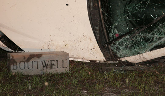 The wrecked vehicle in the cemetery presented a pictured that several emergency workers called “eerie”. The vehicle landed on it side next to a portion of a tombstone that said “Boutwell”. The teen owner of the vehicle has the last name Boutwell, according to authorities at the scene.