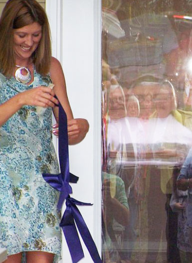 Pictured top: (L-R) Jennifer Dorriety, her daughter Kaylee and Escambia County Habitat for Humanity Executive Director Alecia Glaize at the dedication for Dorriety’s new home in Nokomis. Pictured top inset: Dorriety at Habitat dedication as an army of volunteers and supports (seen in a reflection in the glass) look on. Pictured bottom inset: Volunteers work during the first weekend of construction. Pictured bottom: A group of Northview High School students volunteered to help build the home. NorthEscambia.com and courtesy photos, click to enlarge.