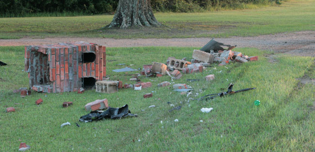 If you will notice your state roads have no brick mailboxes, just for this reason. They have an ordinance against them being put up on a road that has a 25 mile or higher speed limit, the county has a similar ordinance but it is not inforced. I relize it is still upon the driver to stay between the lines but a breakaway mail box does not do this kind of damage.