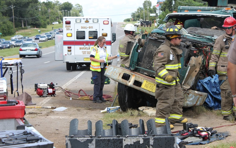 Harvey was seriously injured in the crash, according to the FHP. Firefighters worked until about 3:45 to free him from the cab of the truck. He was airlifted to Sacred Heart Hospital.