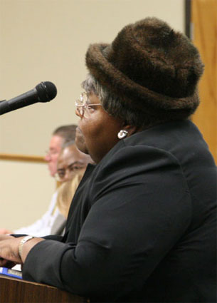Pictured: Longtime Century resident Annie Savage addresses the Escambia County School Board in January, 2009. Savage was speaking in favor of keep Carver/Century K-8 School open. NorthEscambia.com file photo, click to enlarge.
