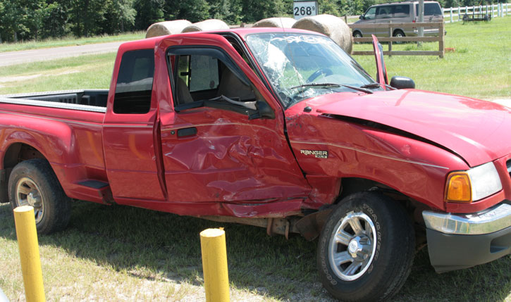 Pictured top: Five people in this SUV escaped injured in a Thursday afternoon crash at the McDavid Mini Mart on Highway 29 near Highway 164. Pictured below: The driver of this pickup truck received minor injuries. NorthEscambia.com photos, click to enlarge.