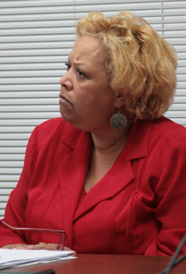 Pictured: Century Council member Sharon Scott listens to a speaker at a recent Century Town Council meeting. NorthEscambia.com file photo, click to enlarge.