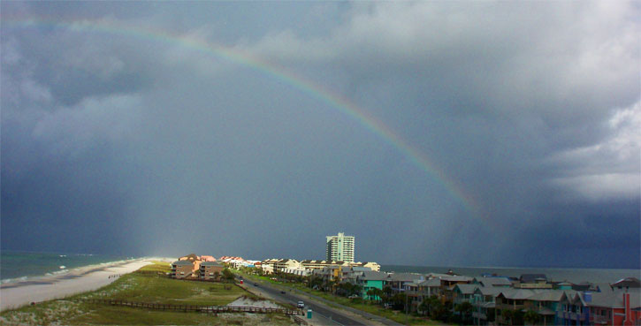 I was in Pensacola the week of June 26-July 2. We stayed on the beach and was able to see the work and oil. I made several pictures; however, one stands out….With rain, thunder, lightning, strong winds, and the oil spill, it is nice to know that God is still in control.