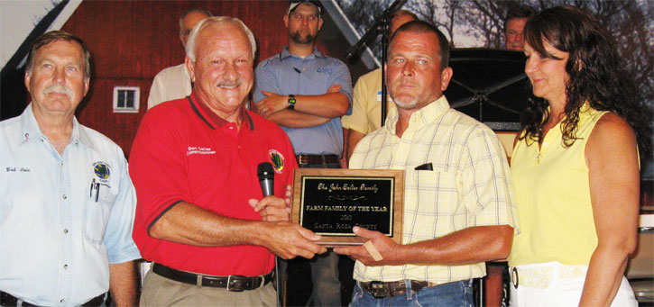 A highlight of the tour was recognition of the John Salter Family as “Outstanding Farm Family of the Year”. John and his wife Stacy accepted the award from County Commissioners Don Salter and Bob Cole during the lunch program at the Farmers’ Opry. Congressman Jeff Miller also presented the couple with a resolution he read before the U. S. House of Representatives honoring the Salter family for their accomplishments. John is a fourth generation farmer who started farming with his dad in 1980. Today the Salters farm 850 acres of cotton, peanuts, corn, and hay. The Salters are leaders in our county’s production of food and fiber and are active in various agricultural organizations.
