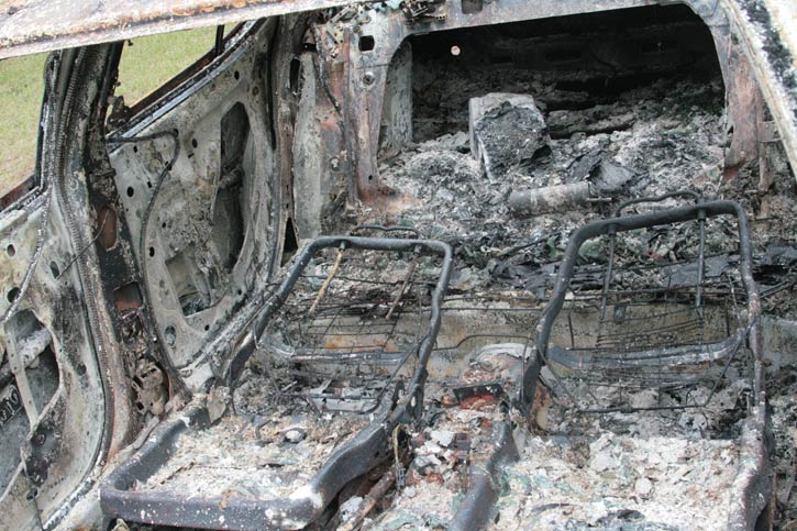 Now being skeptical, sometimes things aren’t what they are reported to be, so keeping this in mind this may not be just a simple car theft. How did the alleged thief make off with the car? Was there a set of keys conveniently left lying around or was the car’s ignition damaged? Another thing, I find it hard to believe that nobody reported this burnt out car sooner.