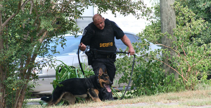 Pictured: Authorities are investigating the armed robbery of Scott’s Pharmacy in Molino Monday afternoon. Pictured inset and below: Deputies surrounded a house on Molino Road after a possible suspect refused to exit a Molino Road home. NorthEscambia.com exclusive photos, click to enlarge.
