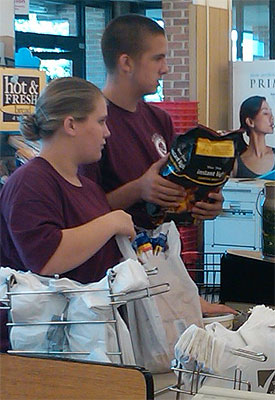 Members of the Northview High School NJROTC spent part of their Saturday bagging groceries at Winn Dixie in Atmore as a fund raiser for the group’s activities. NorthEscambia.com photos, click to enlarge.