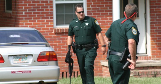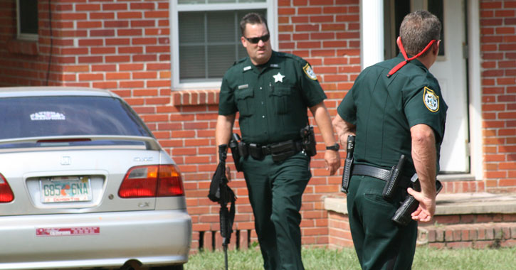 A short time after the robbery, numerous deputies converged on the home. With weapons drawn, deputies ordered the occupants of the home to exit. Flowers and a female complied and were temporarily detained, questioned and later released.