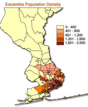 An urban area would be defined as an area containing a population of at least 1,000 people per square mile and could include contiguous areas with a population of at least 500 people per square mile. Essentially, urban districts would be south of Kingsfield Road, according to population density maps from the Escambia County Planning and Zoning office. The only North Escambia exception, according to the consolidation plan, would be the current Town of Century which would be classified as urban.