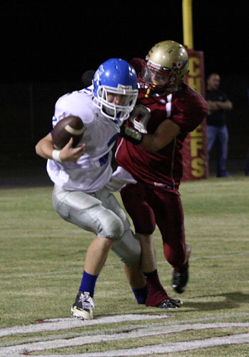 The Chiefs scored early against their rival Royals. With 8:19 to go in the first quarter, Roderick Woods put Northview on the board. A good kick, and NHS was up 7-0. The Chiefs would strike again with 1:19 in the first quarter with a Montaio Mitchell touchdown and a good kick from Lance Bushaw.