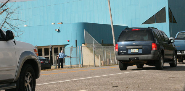 Pictured above: Parents line up outside Ernest Ward Middle School Tuesday afternoon as the gates are opened following a lockdown. NorthEscambia.com photo, click to enlarge.