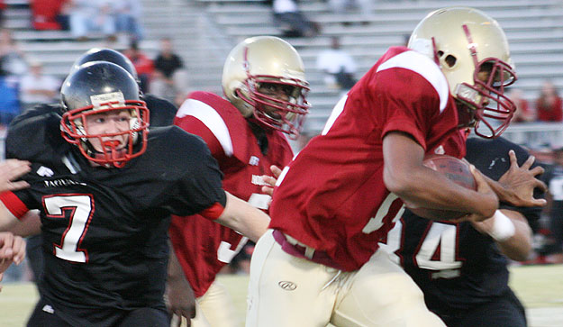 About two minutes later, the Chiefs crossed midfield deep into Jaguar territory on a Kevin Vaughan pass to Dalton Daniel. On the next play, Vaughan was in on a 15-yard quarterback keeper. A good two point conversion, and the game was tied 8-8 in Bratt.
