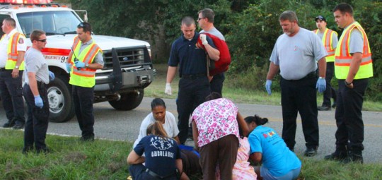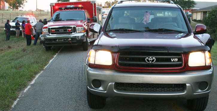 Pictured above and below: A pedestrian was struck by a vehicle Tuesday evening in Walnut Hill. NorthEscambia.com photos, click to enlarge.