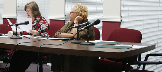 Pictured top: Empty seats surround Century Town Council members Ann Brooks (left) and Sharon Scott Monday night as the council did not have a quorum to conduct business. NorthEscambia.com photo, click to enlarge.