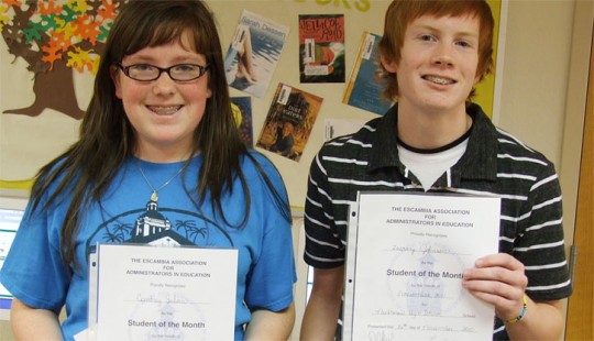 Pictured top: Courtney Solari and Zachary Johnson, Northview High School’s Students of the Month for November. Submitted photo for NorthEscambia.com, click to enlarge.