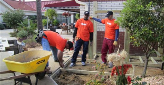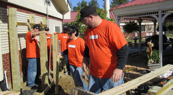 Home Depot’s Team Depot recently donated their time and money to build an outdoor potting bench for the residents at Century Care Center. The bench is custom built for use by Century Care residents in wheelchairs. Submitted photos for NorthEscambia.com, click to enlarge.