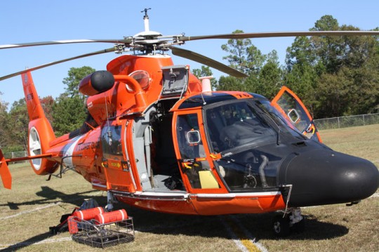 A tribute to the U.S. Coast Guard included a fly-in by Coast Guard HH-65 Dolphin helicopter from New Orleans.