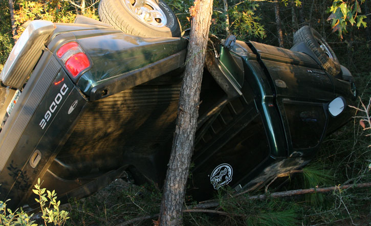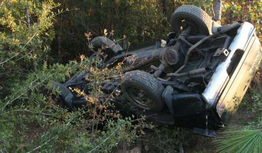 The wreck happened about 4 p.m. on a dirt portion of Pine Barren Road about a mile north of Highway 29. A Dodge pickup occupied by two teenage girls left the roadway and overturned against a tree.