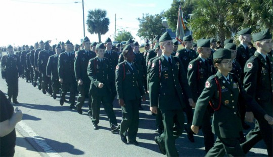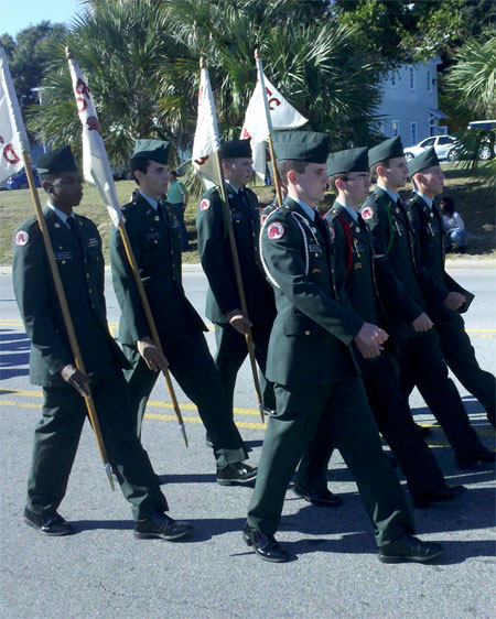 The Tate High School AJROTC “Aggie Battalion” marched in the Pensacola Veterans Day Program this morning. Submitted photos by April Mitchell for NorthEscambia.com, click to enlarge.
