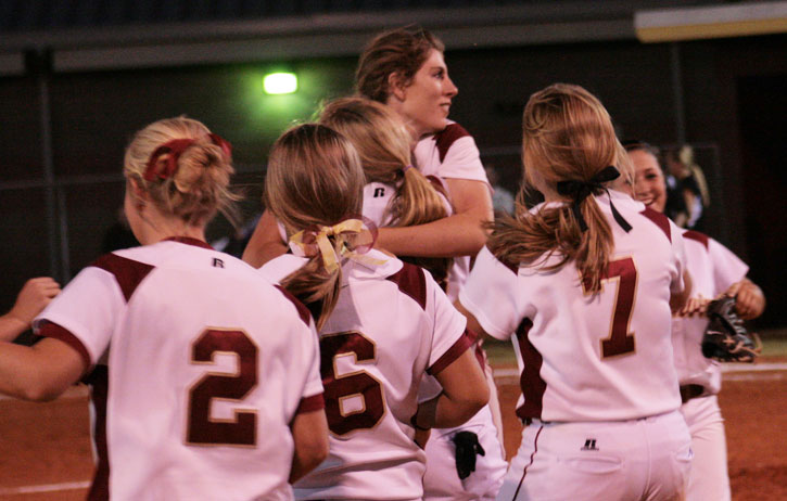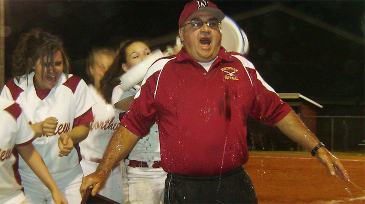 Northview Head Coach Sammy Day is showered with ice water after the Lady Chief’s district win.