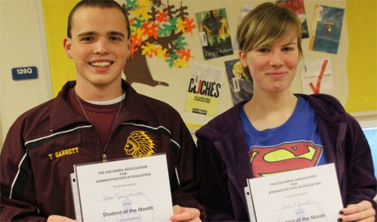 Northview High School has named senior Tyler Garrett and freshman Anna Donald as students of the month for the month of December. Submitted photo for NorthEscambia.com, click to enlarge.