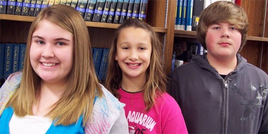 Ernest Ward Middle School has named Haley Weaver, Denise Floyd and Tristan Brown (pictured L-R) as Students of the Month for December. Submitted photo for NorthEscambia.com photo, click to enlarge.