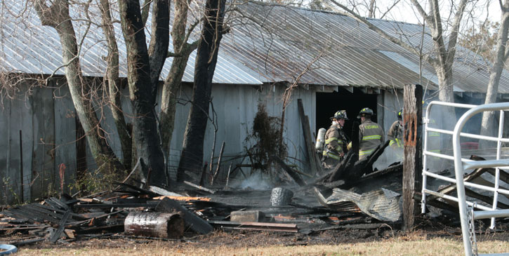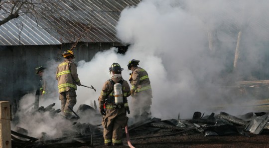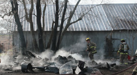 The blaze, which was believed to have been started by embers from a nearby trash fire, was reported about 9:15 a.m. on Crabtree Church Road just off Highway 97. The shed was a total loss, but there was little damage to the nearby barn.