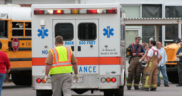 A fight at Ernest Ward Middle School during afternoon dismissal ended with a bus driver in the hospital and seven students arrested. The fight began between two students on a bus and escalated into an affray in the parking lot involving a small number of students. Several school staff members and bus drivers tried to stop the fight, and several of them were struck by students. (Pictured top)