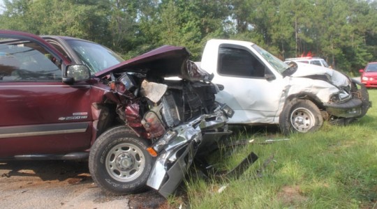 The accident was reported about 5 p.m. at the intersection of Beulah Road and Muscogee Road near the Alabama state line. As emergency workers were loading patients from the first collision, one of the wrecked pickup trucks was struck by a utility trailer being towed by a passing pickup truck. There were no injuries in the second accident.