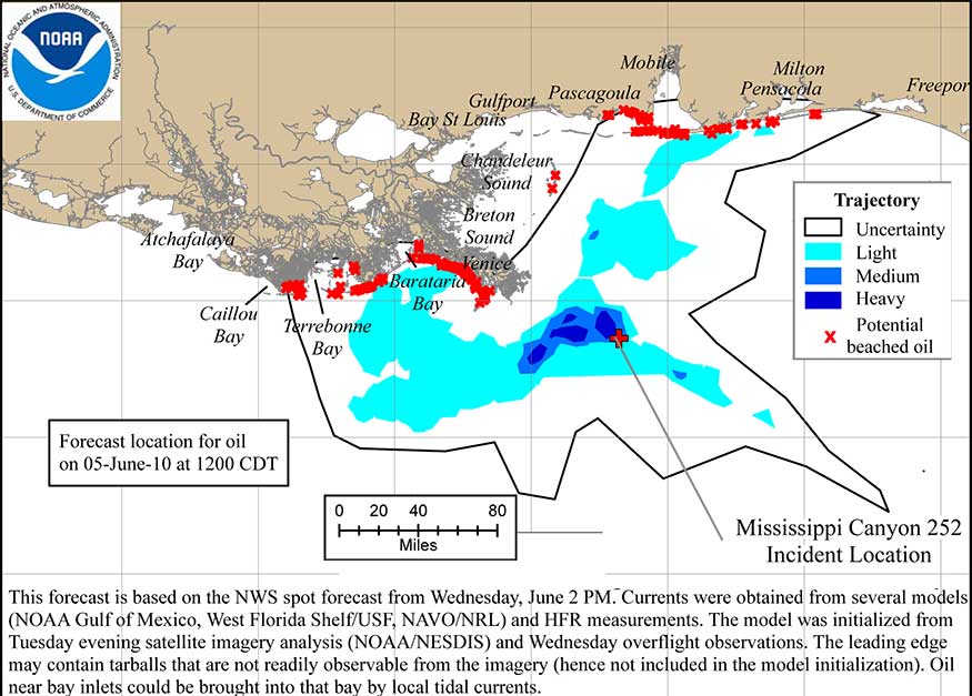 - Observations by the National Oceanic and Atmospheric Administration (NOAA) continue to indicate that a small portion of the oil slick has reached the Loop Current in the form of light sheens. Florida continues to monitor the location of the loop current based on NOAA’s daily projections.
