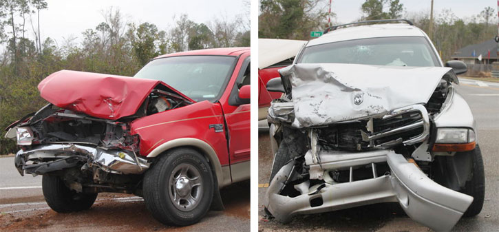 Pictured above and below: One person was injured after this crash Monday afternoon on Highway 29 in Cantonment. NorthEscambia.com photos by Kristi Smith, click to enlarge.